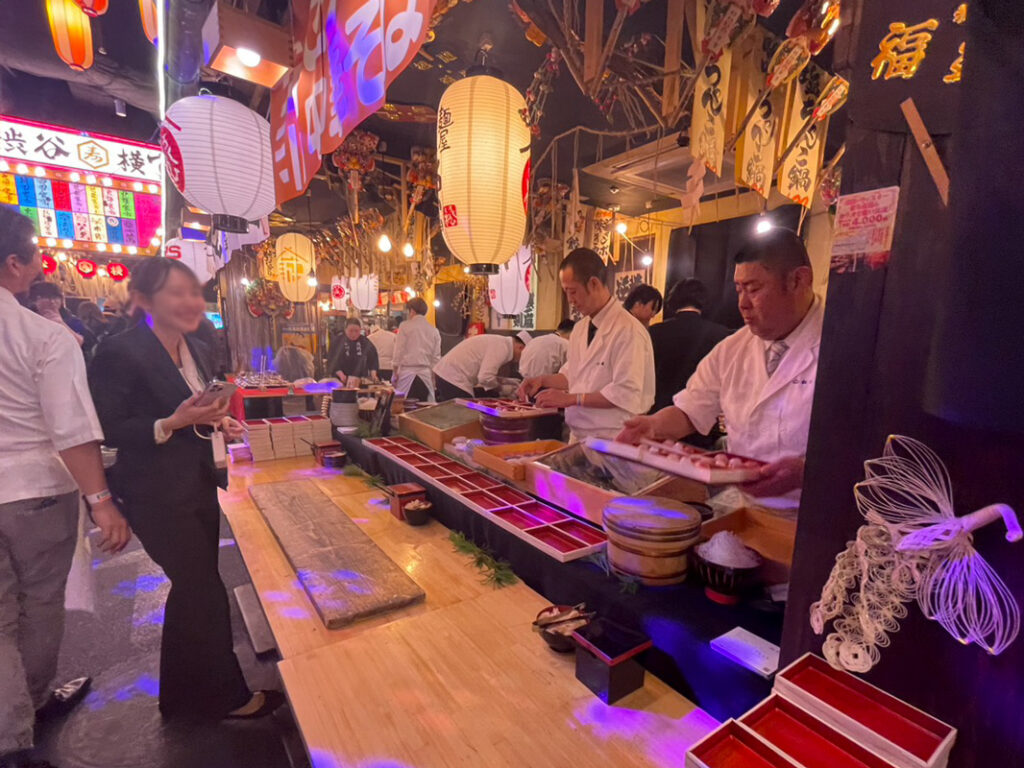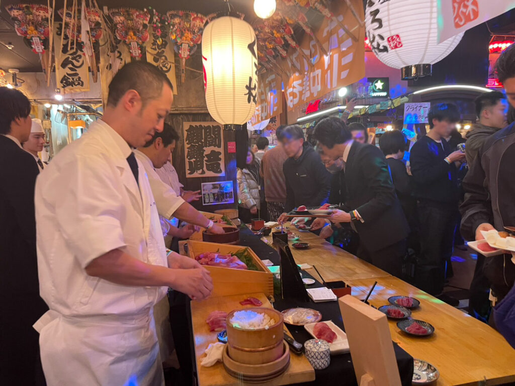 2026年1月に関東の企業様主催の新年会(参加者300名超)において、マグロ解体ショーを軸とした食の演出を担当させていただきました。